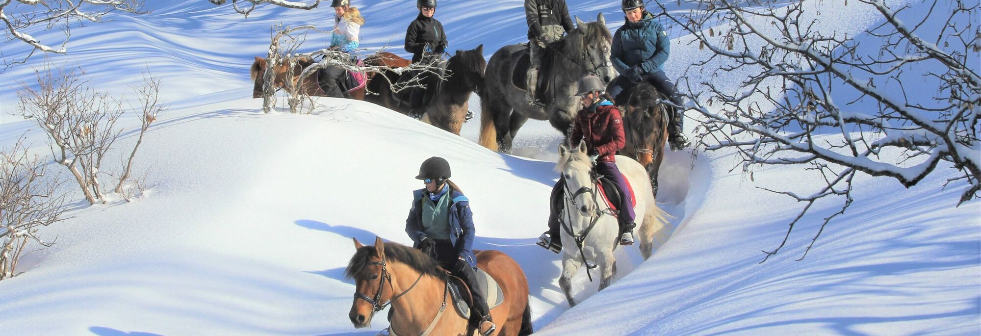 Le Ranch Nordique vous propose la balade "trace découverte" dans la neige, accessible à tous, pour un moment paisible à cheval dans la forêts enneigée de Méribel.