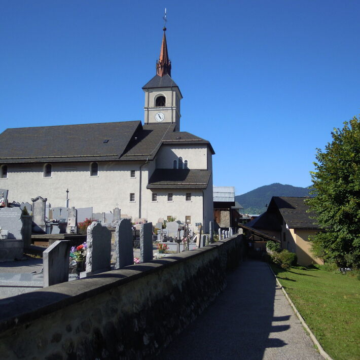 Cette église fut complètement reconstruite entre 1698 et 1702. Trois siècles plus tard, sa décoration baroque intérieure a retrouvé sa vitalité colorée sous les pinceaux de Daniel Venjean, artiste de la vallée...