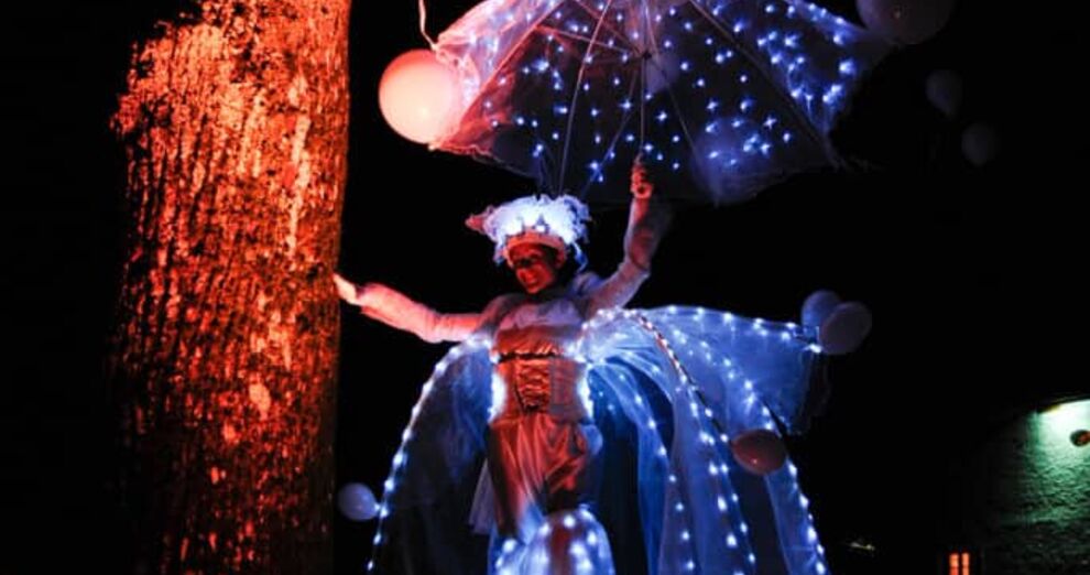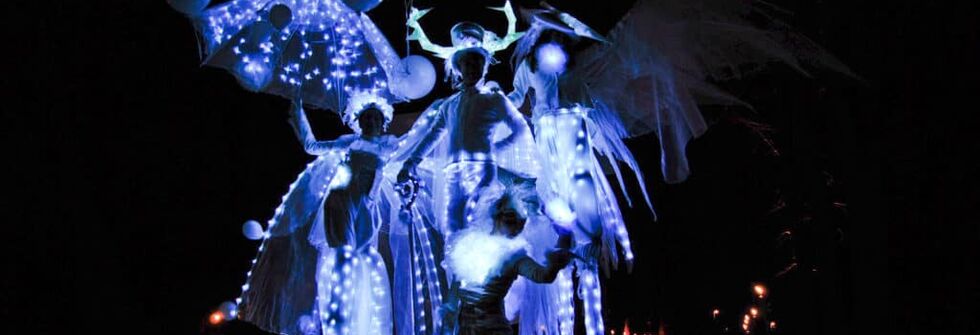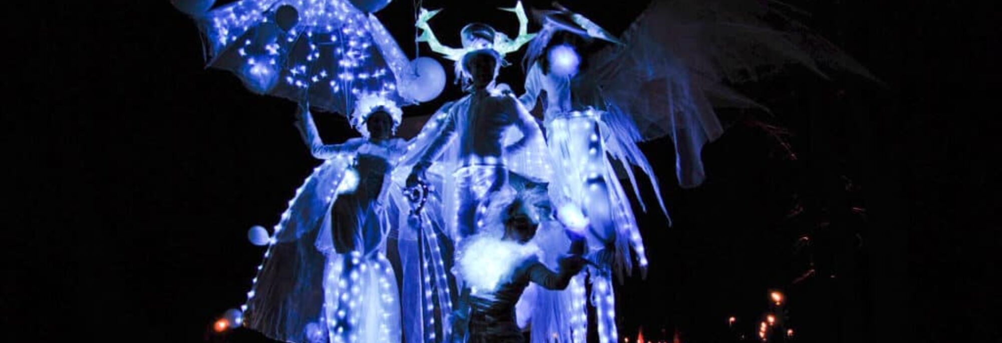 Déambulation lumineuse et musicale où se croisent la Louve protectrice, le Héron perché, les Cerfs majestueux et la Lune scintillante. Un voyage poétique et féerique pour émerveiller petits et grands au cœur de la magie de l’hiver.
