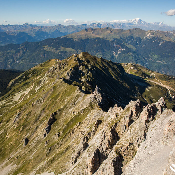 Depuis l'Altiport rejoignez par un joli sentier piéton, qui se termine en lacets le long de la ligne de crête entre les communes des Allues et de Saint Bon (Courchevel), le mythique Col de la Loze (2304m). Arrivée d'une étape du Tour de France 2020.