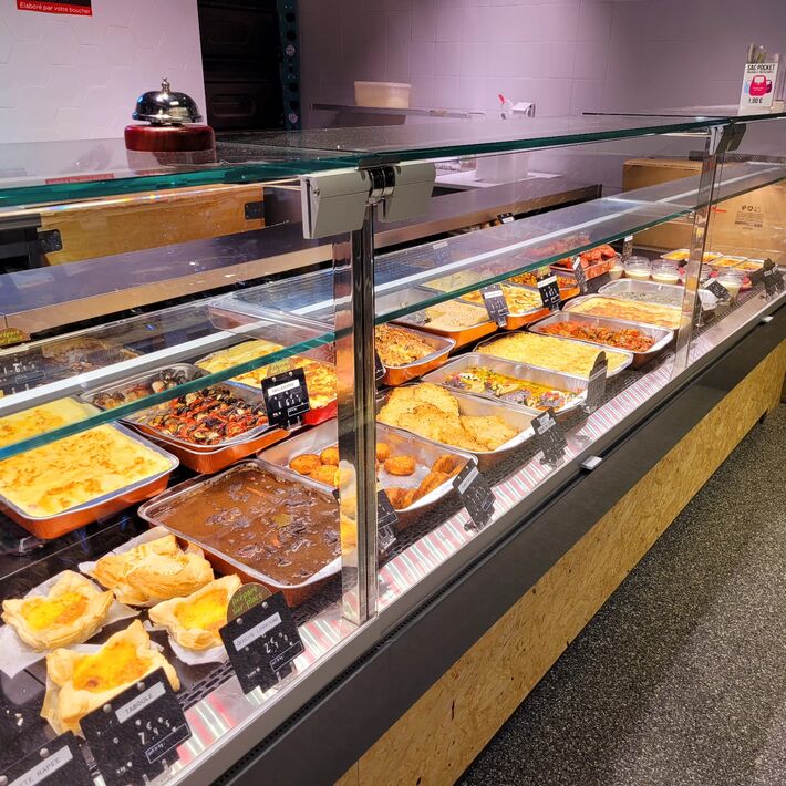 Le Carrefour Montagne de Méribel Mottaret vous propose un service complet, avec un plat du jour cuisiné chaque jour, des pizzas maison cuites sur place le soir, et un rayon boucherie. Commandez en ligne pour une livraison ou un retrait Click & Collect.