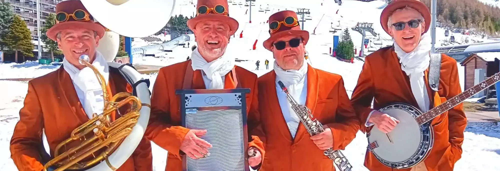 The Spicy Men rock Méribel to the sound of New Orleans jazz! Four explosive musicians, playing blues, ragtime and swaying rhythms. Whether in the studio or on the road, a festive atmosphere and good spirits are guaranteed, just like Christmas in New Orleans!
