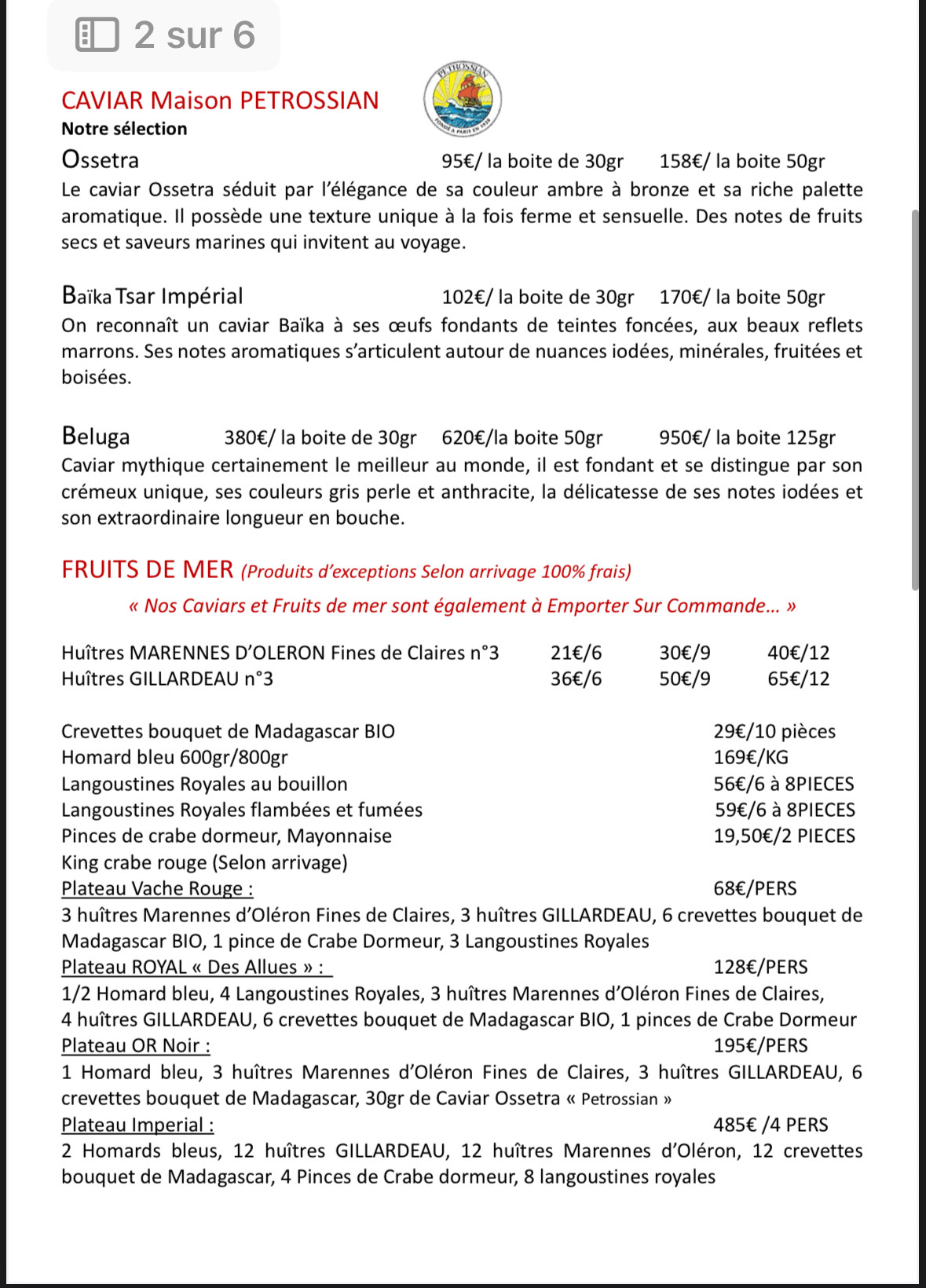 • Culinary specialities Fruits de mer - Spécial viande