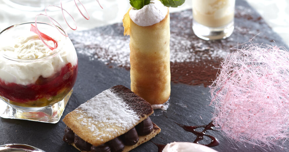 Delicate flavours, quality and seasonal products, and a fresh take on Savoie specialities come together in this elegant setting with its mountain backdrop. Original recipes, and an authentic and inventive touch. Discover a generous selection of wines, chosen to perfectly complement your meal.