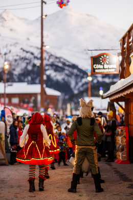 Dès les premiers rayons du soleil, la station s’anime et devient un véritable théâtre de fête. Les parades musicales déambulent dans les rues, répandant la bonne humeur. Pour les plus jeunes : rendez-vous au Village des Inuits ! Maquillage, sculptures sur glace, magie, tir à l’arc… Un espace ludique où chaque activité devient une aventure.