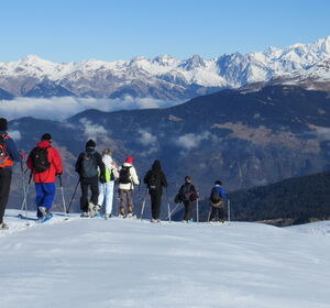 De gekwalificeerde gidsen van Raquett'Evasion bieden u een privé sneeuwschoenwandeling op maat voor uw familie of kleine groep vrienden. "UITNODIGING OP MAAT".